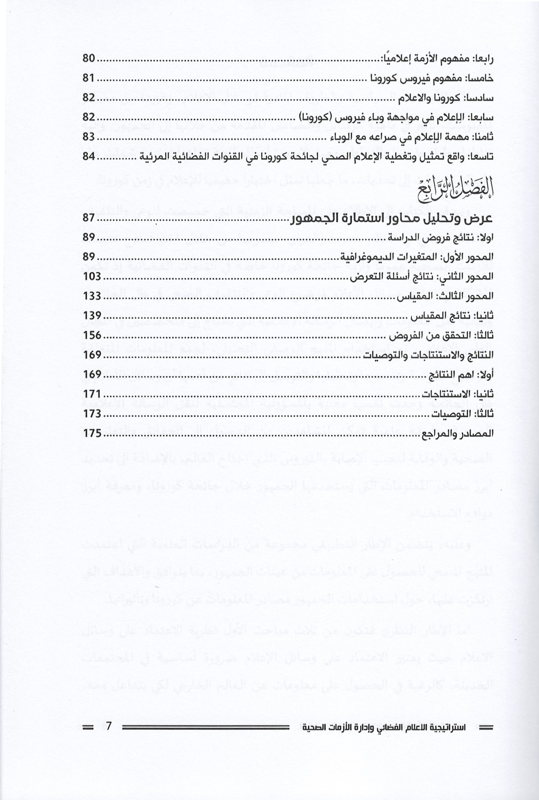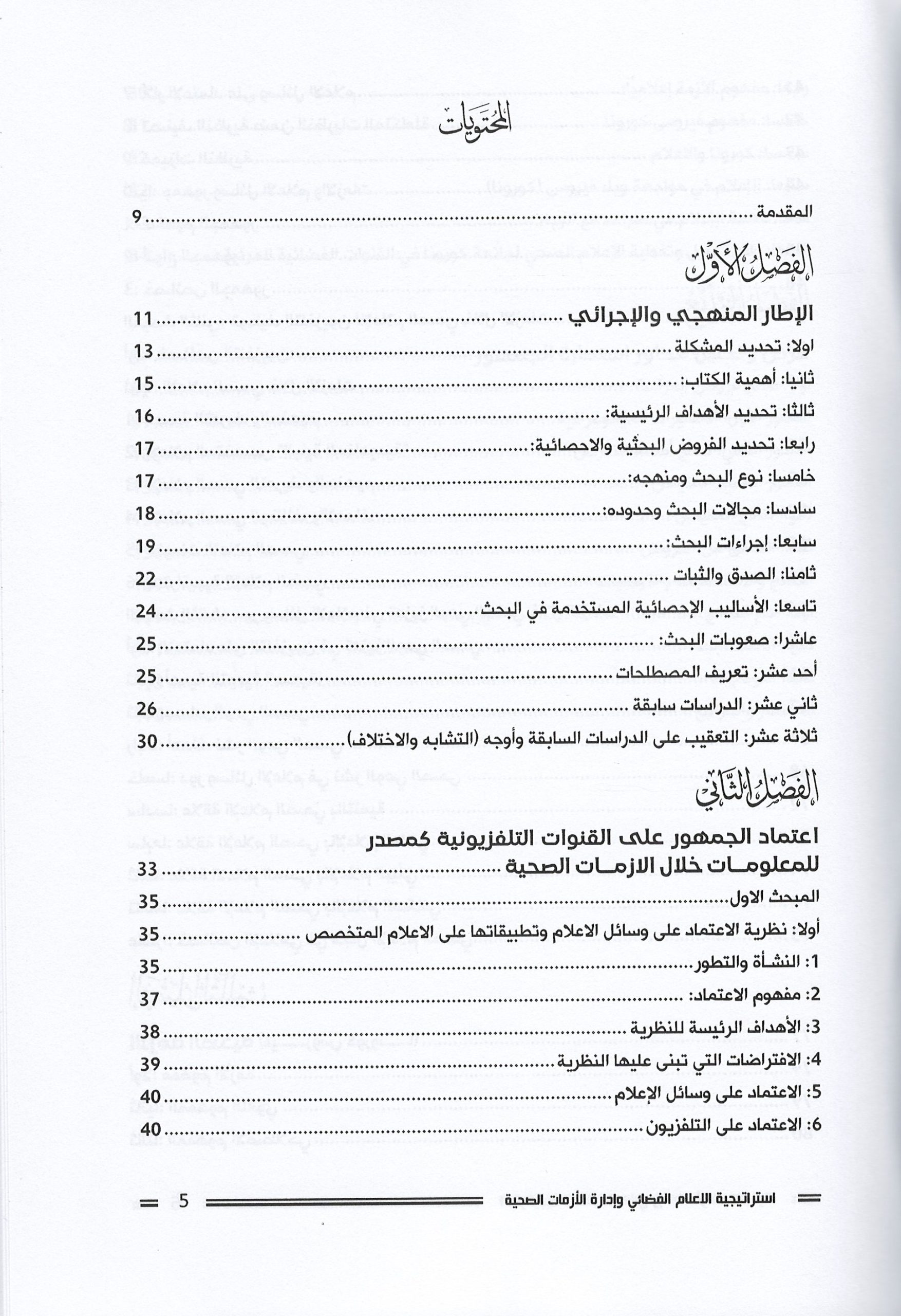 كتاب بعنوان استراتيجية الاعلام الفضائي وادارة الازمات الصحية